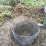 - Wühlmauskorb in das Loch gestellt