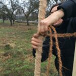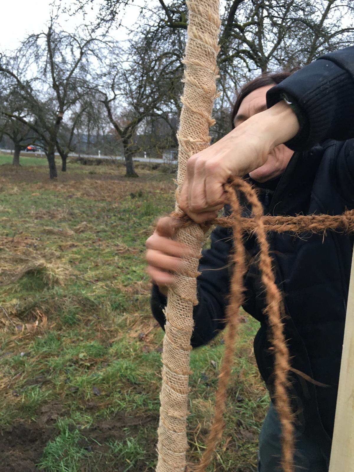 - Mit Kokosnuss-Schnur Baum fest angebunden